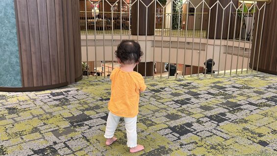 床が絨毯なので、よちよち歩きでも安心して見ていられました。