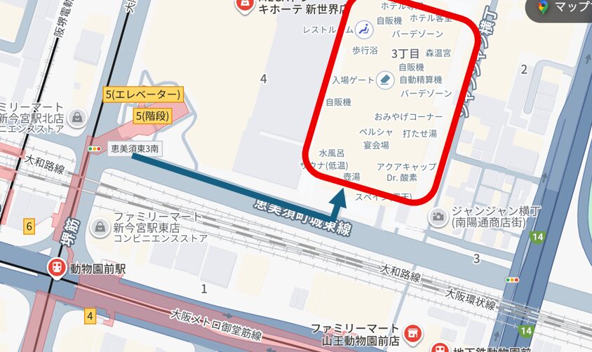 動物園前駅からは、5番出口からでて、左手にドンキホーテがあるのでその奥へと進みます。